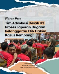 Siaran Pers Tim Advokasi Desak KY Proses Laporan Dugaan Pelanggaran Etik Hakim Kasus Rempang 4 Oktober 2024